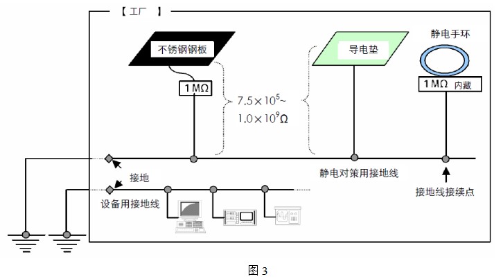 四、防靜電區(qū)域通用接地方法:如下圖3