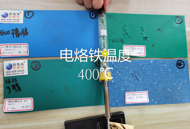 圖:創(chuàng)選寶防靜電臺墊耐高溫測試